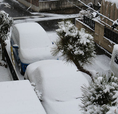 暗く雪が降りそうです。