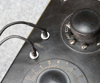 100年前のラジオのホーンプラグ装着画像