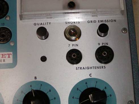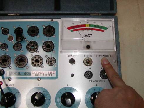 テスターの電源を入れます、ヒーターつまみはどこでもOK、Aの感度つまみも関係なし。