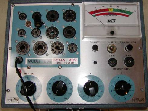 テスターの電源を入れます、ヒーターつまみはどこでもOK、Aの感度つまみも関係なし。